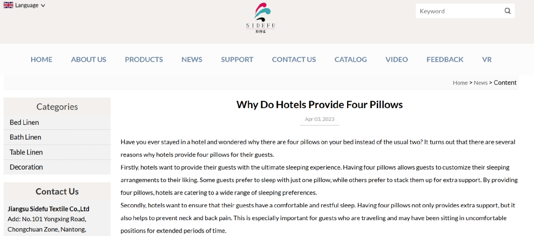 Sidefu China. (2023, April 3).Why do hotels provide four pillows. Sidefu China.